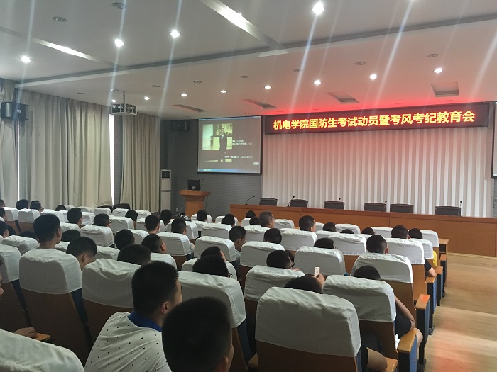 (通讯员 高世博)5月31日下午,机电学院国防生考试动员暨考风考纪教育会在教二楼301室召开。学院2014级、2015级全体国防生参加会议。
