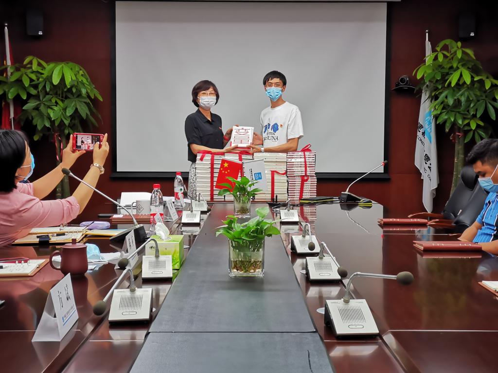 智能公司工会主席葛卿代表公司为冰球官网赠送《从政提醒》《大力保持党的纯洁性》《变量》等经典书籍,以营造风清气正、崇廉尚廉的合作氛围,拉开“校企廉政共建”的序幕。